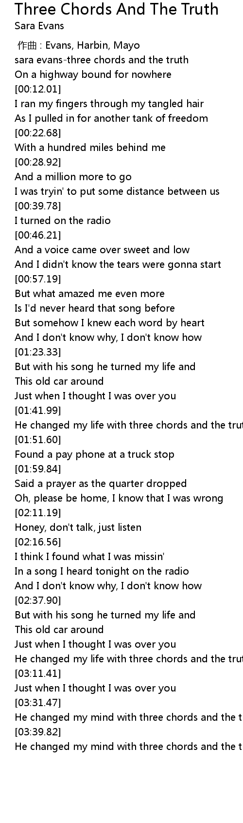 | [03:40.51] | He changed my mind with three chords and the truth |