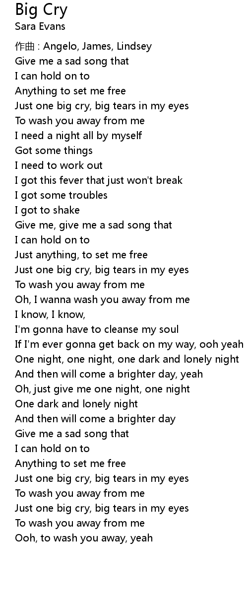 | Just one big cry, big tears in my eyes | |