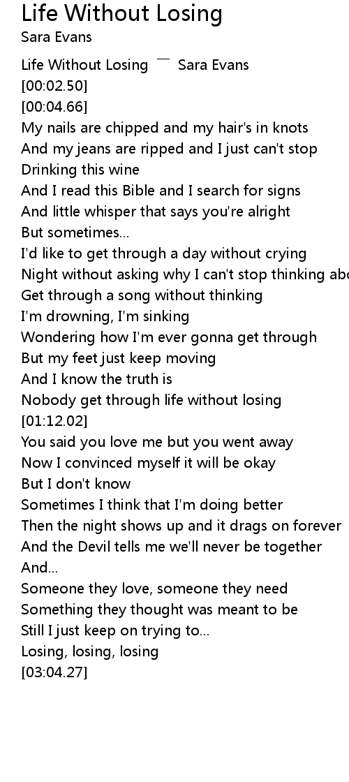 | [00:00.58] | Life Without Losing ―― Sara Evans |