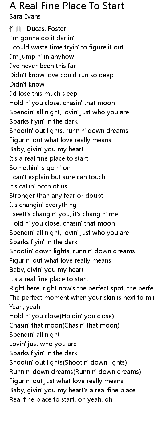 | Real fine place to start, oh yeah, oh |