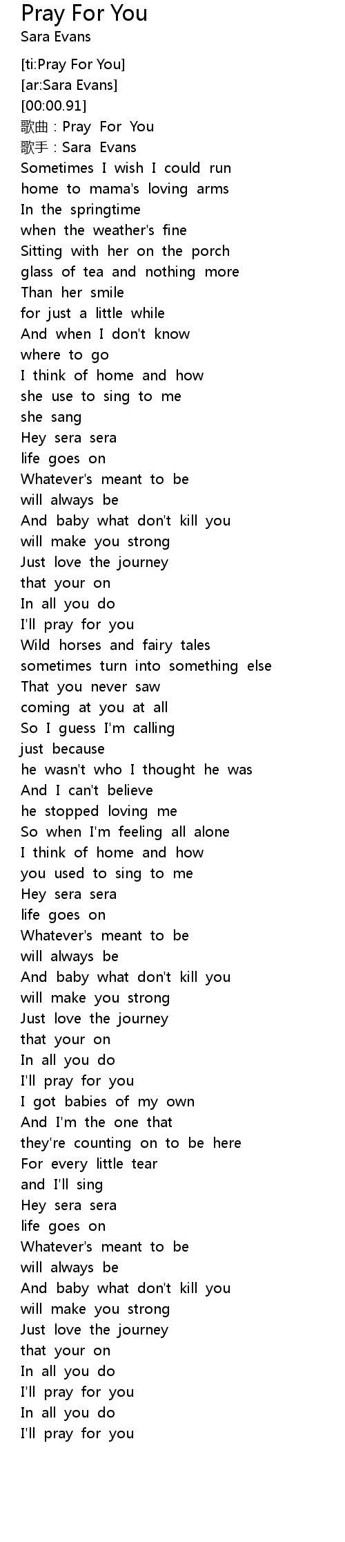 | [01:08.64] | I'll pray for you |