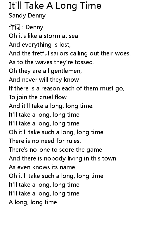 | Oh it' ll take such a long, long time. | |
