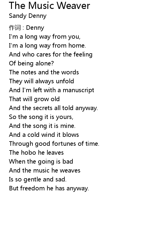 | Song | The Music Weaver |
