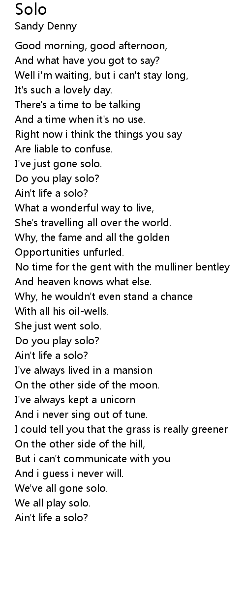 Ain't life a solo? |