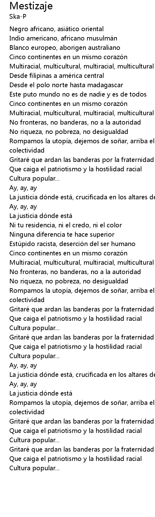 | Song | Mestizaje |