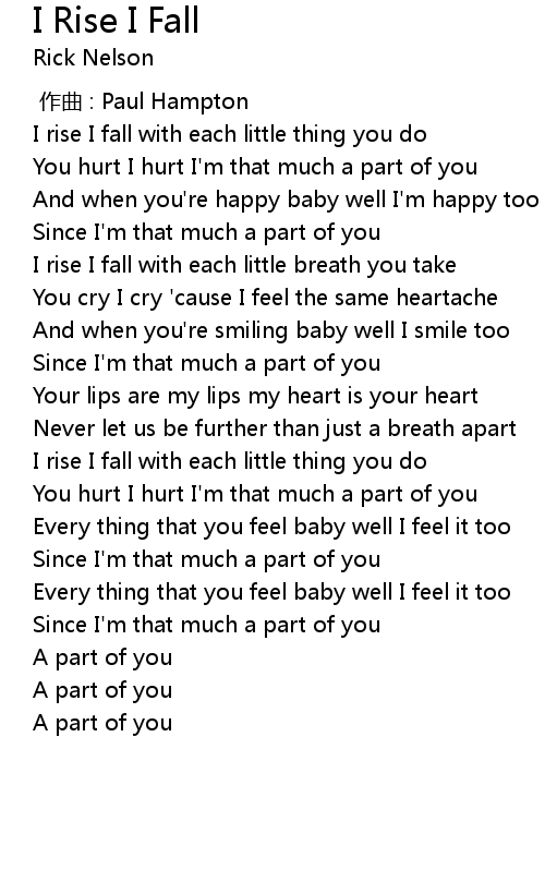 | [00:00.09] | I rise I fall with each little thing you do |