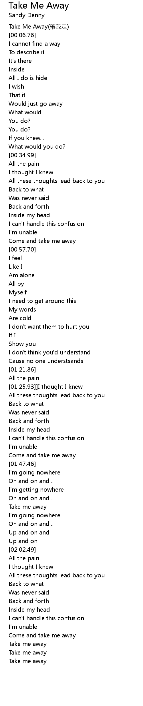 | [01:42.24] | Come and take me away |