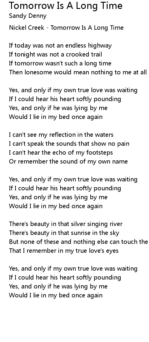 If tomorrow wasn't such a long time |