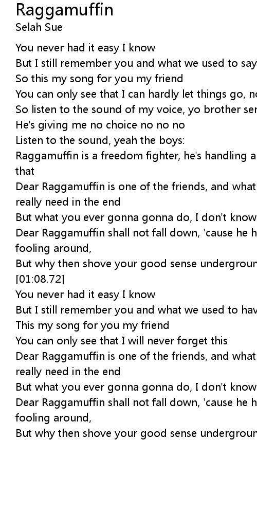 Dear Raggamuffin is one of the friends, and what you see is what you really need in the end |