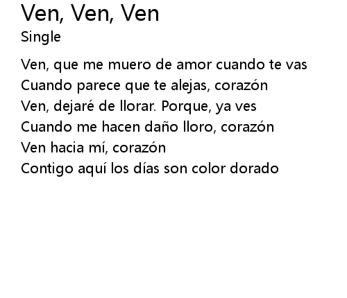 | Ven, dejaré de llorar. Porque, ya ves | |