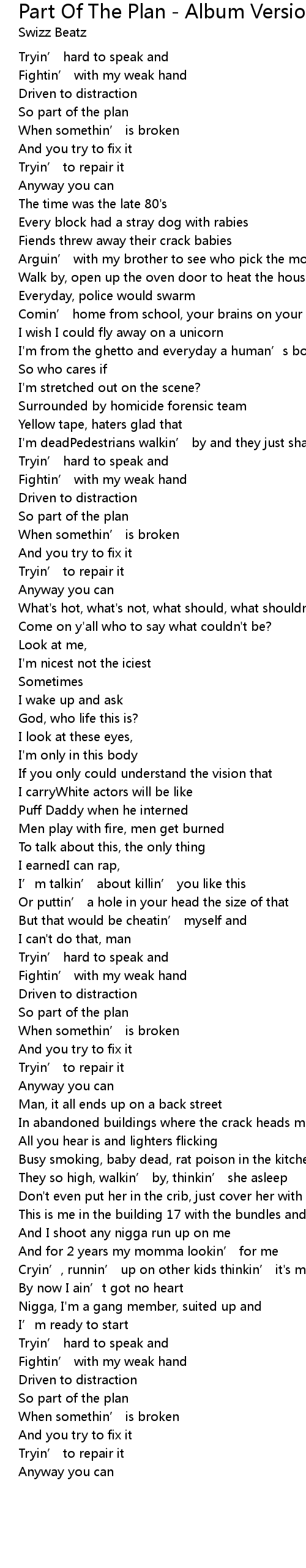 | Song | Part Of The Plan - Album Version (Explicit) |