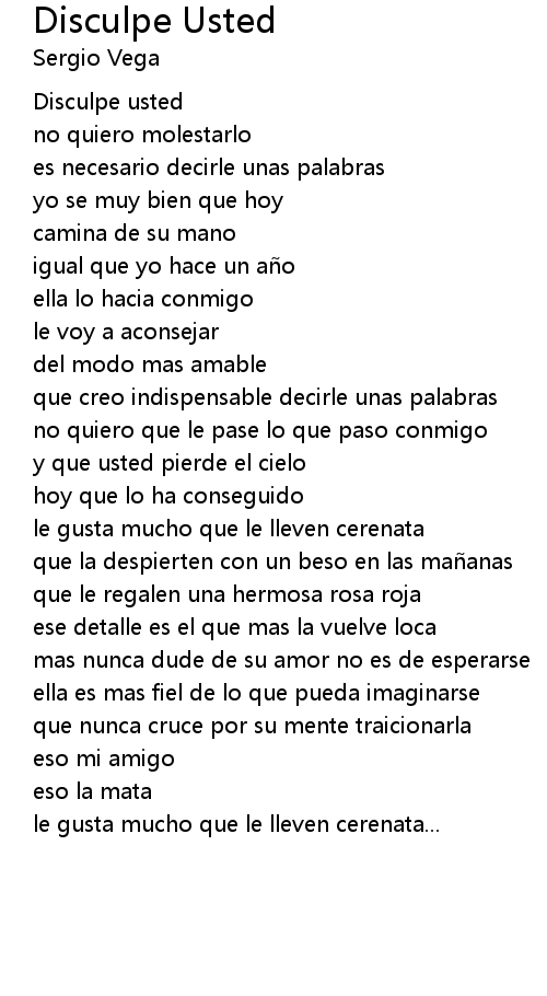 | Song | Disculpe Usted |