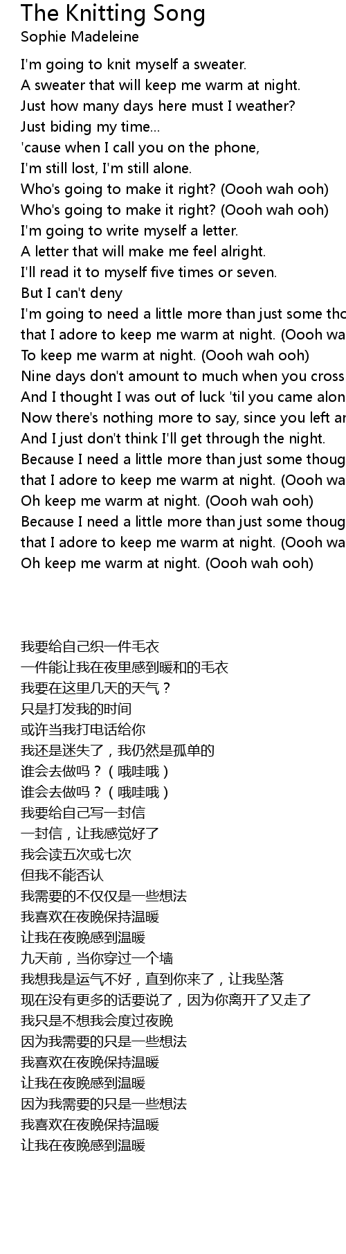 Oh keep me warm at night. (Oooh wah ooh) |