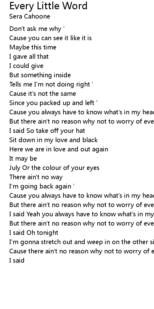 But there ain't no reason why not to worry of every little word |