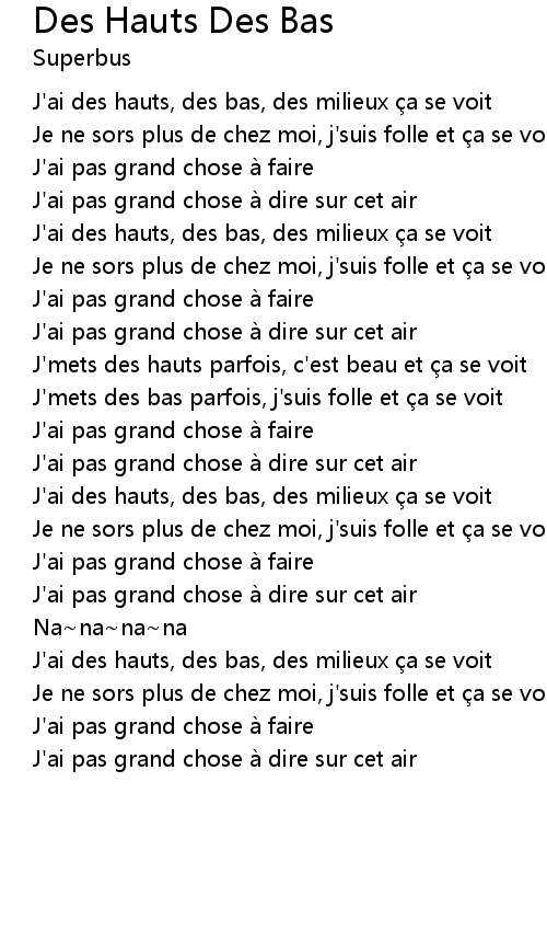 | J' ai des hauts, des bas, des milieux a se voit | |