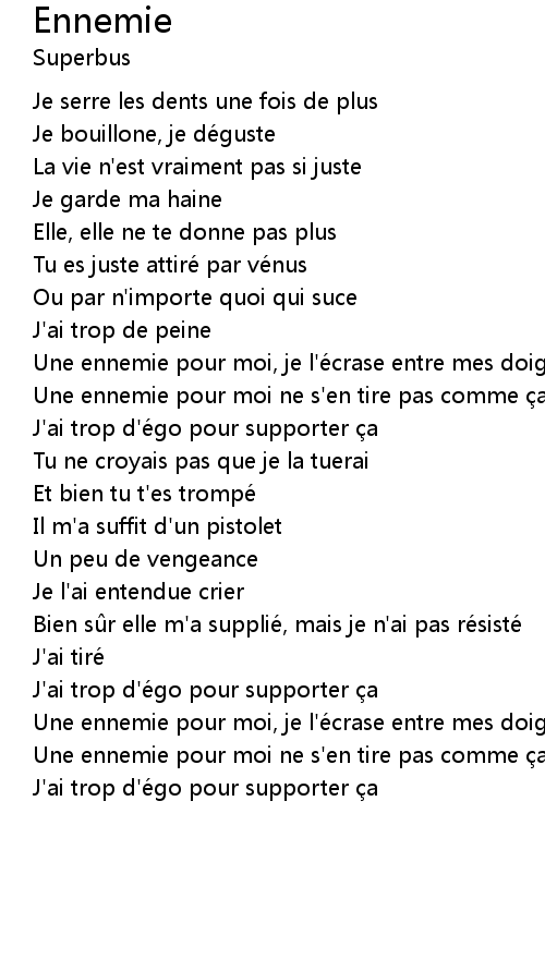 | Une ennemie pour moi ne s' en tire pas comme a | |