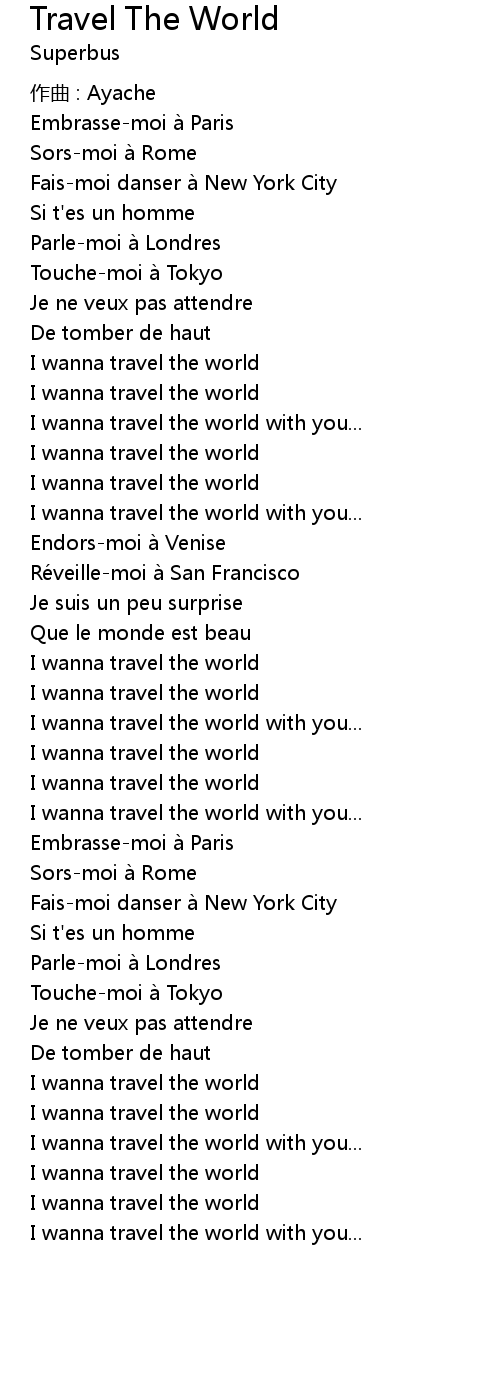 | I wanna travel the world | |