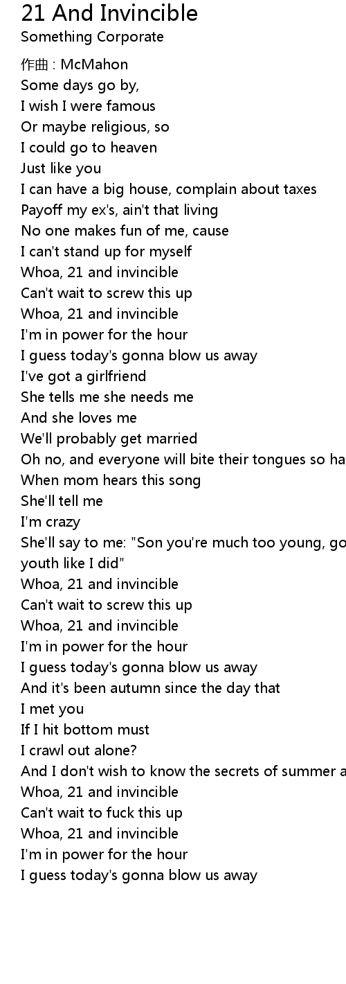 | She'll say to me: "Son you're much too young, go have some fun don't waste your youth like I did" | |
