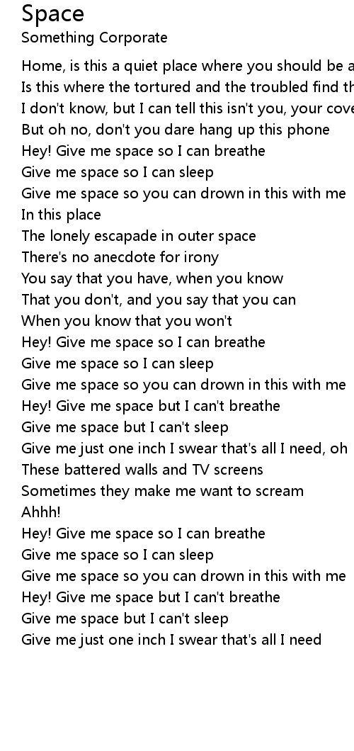 Hey! Give me space but I can't breathe |