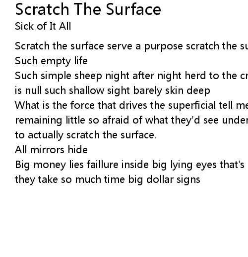 Scratch the surface serve a purpose scratch the surface don't waste my time |