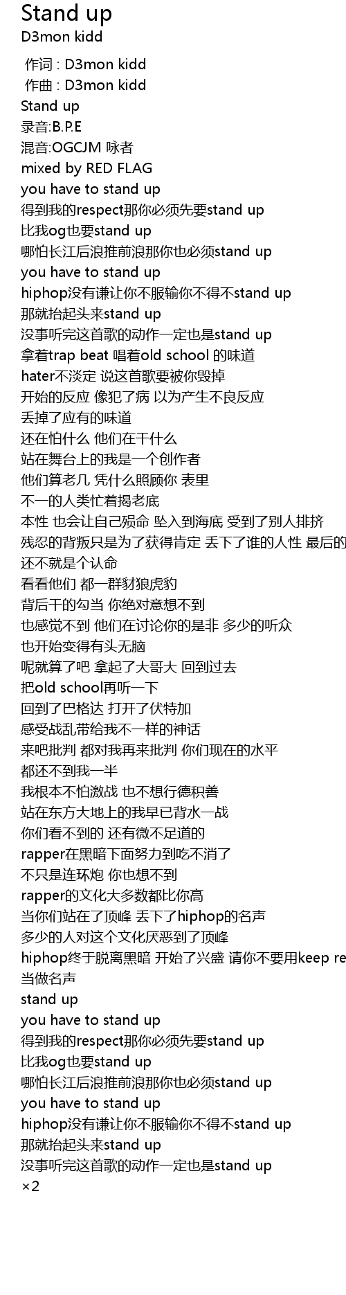 | [02:29.337] | hiphop mei you qian rang ni bu fu shu ni bu de bu stand up |