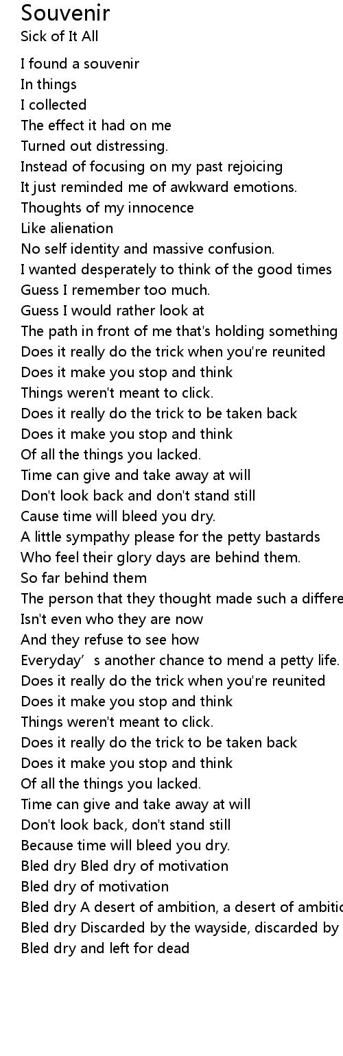| Cause time will bleed you dry. | |