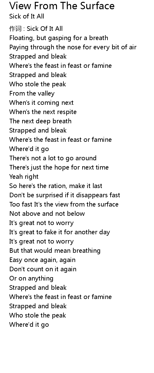 | 作词 : Sick Of It All | |