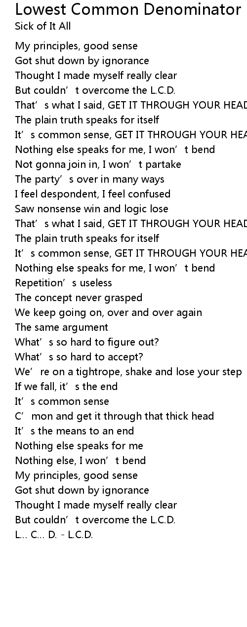 | Song | Lowest Common Denominator |