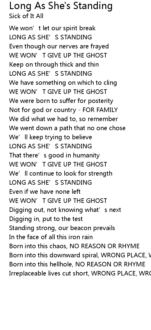 | LONG AS SHE’S STANDING | |