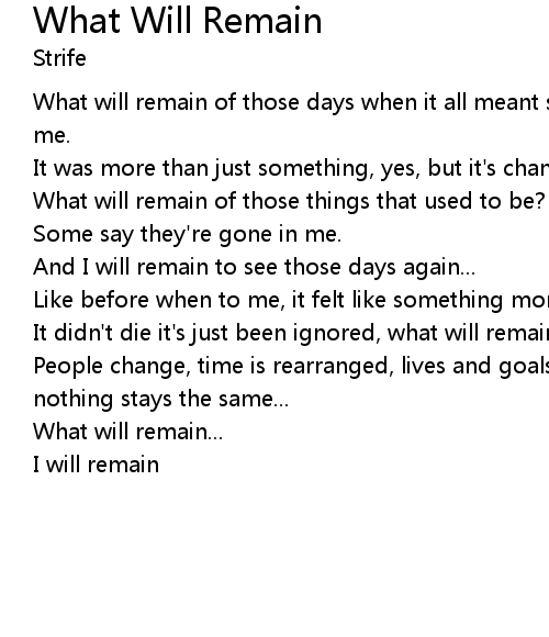 | It didn't die it's just been ignored, what will remain of those days? | |