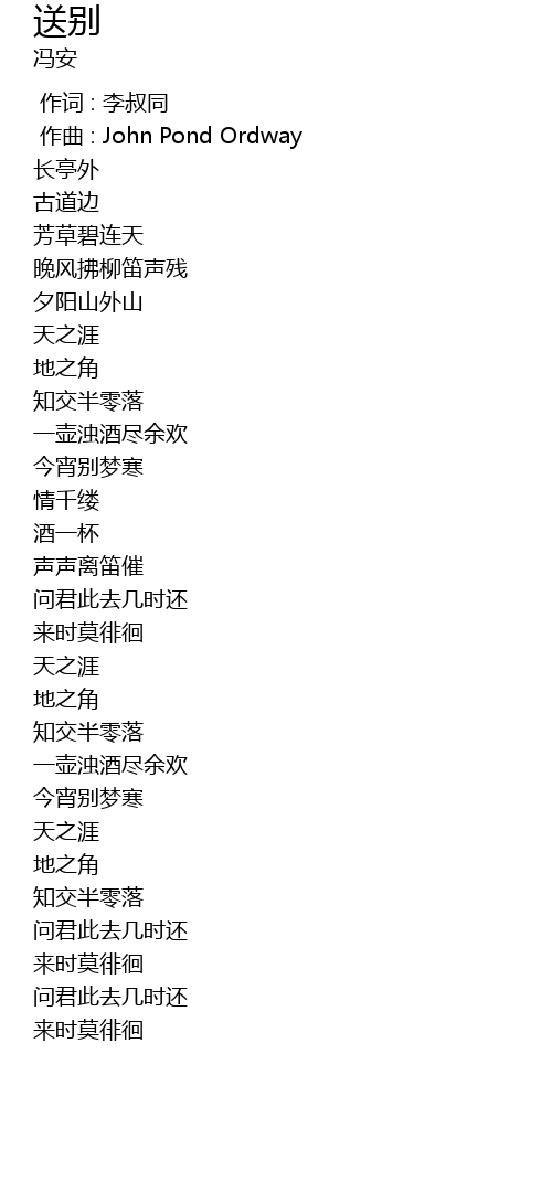| [00:00.000] | 作词 : 李叔同 |