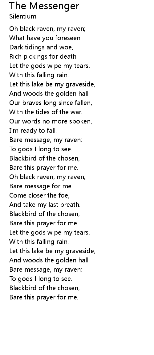 | Oh black raven, my raven; | |