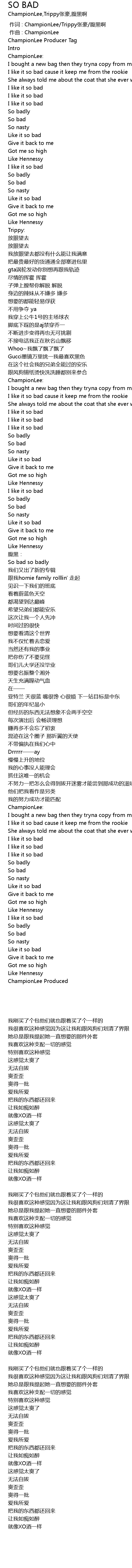 | [00:00.000] | 作词 : ChampionLee/Trippy张豪/腹黑啊 |