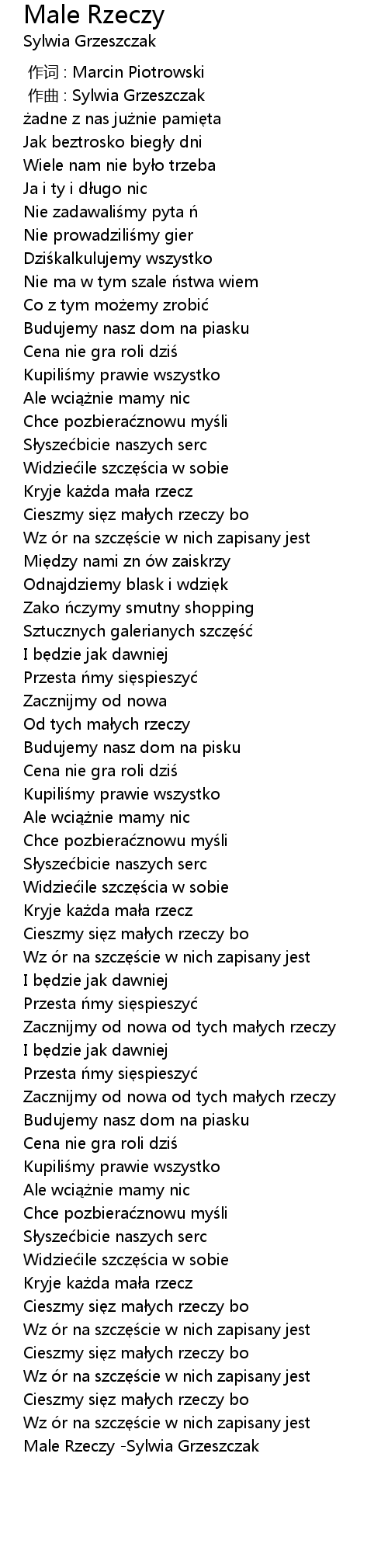 | [03:10.773] | Male Rzeczy -Sylwia Grzeszczak |