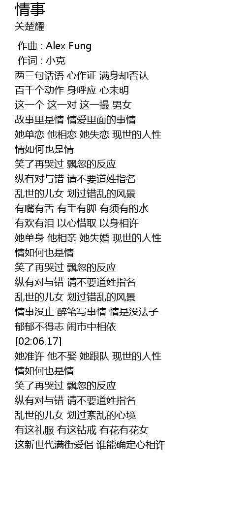 | [00:00.00] | zuo qu : Alex Fung |