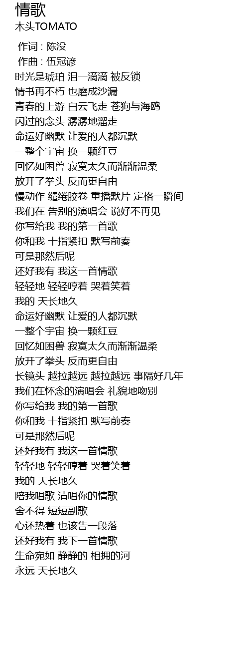 | [00:00.000] | 作词 : 陈没 |
