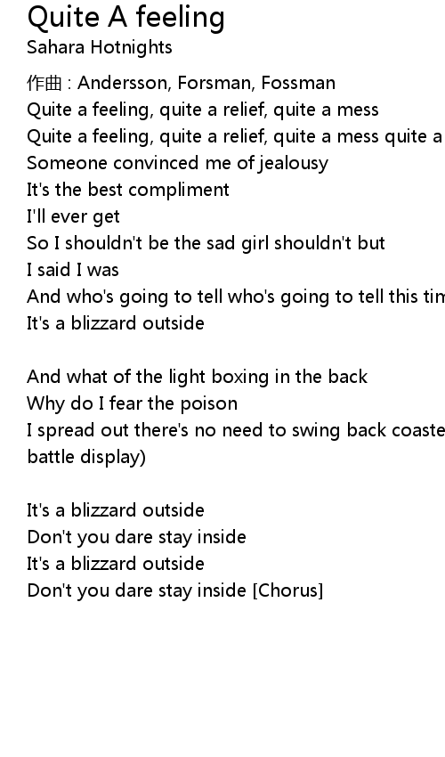 | Quite a feeling, quite a relief, quite a mess quite a mess | |