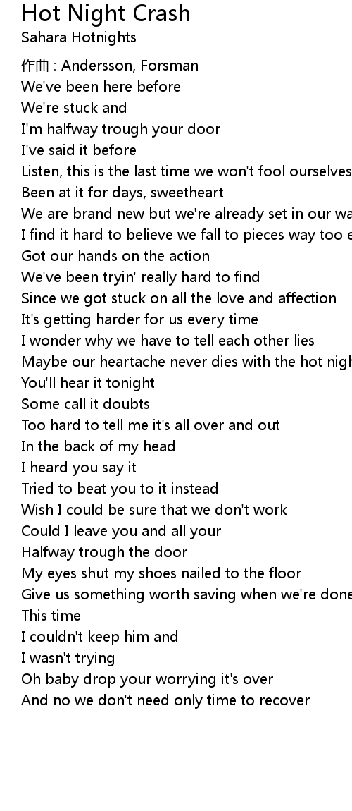| Maybe our heartache never dies with the hot night crash | |