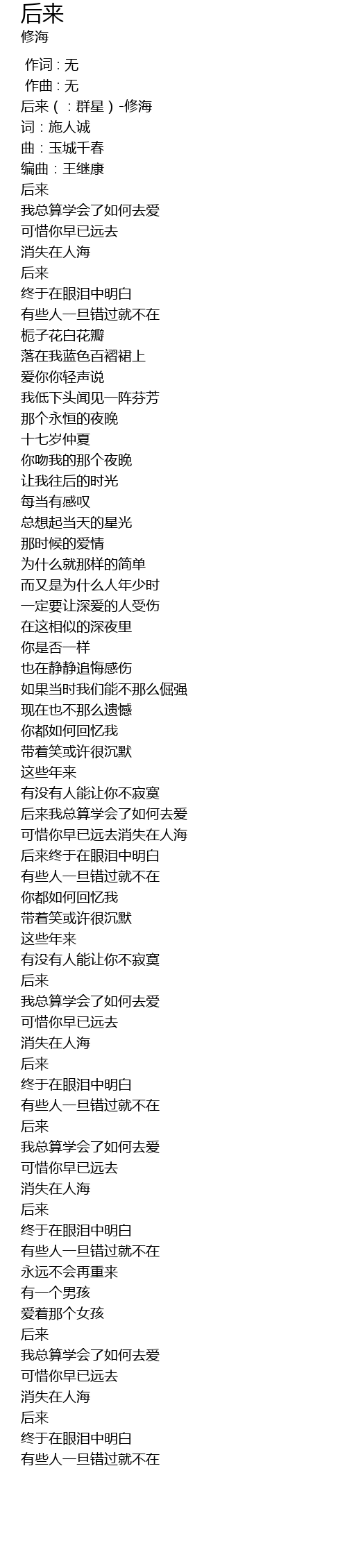 | [00:00.00] | hòu lái: qún xīng xiū hǎi |