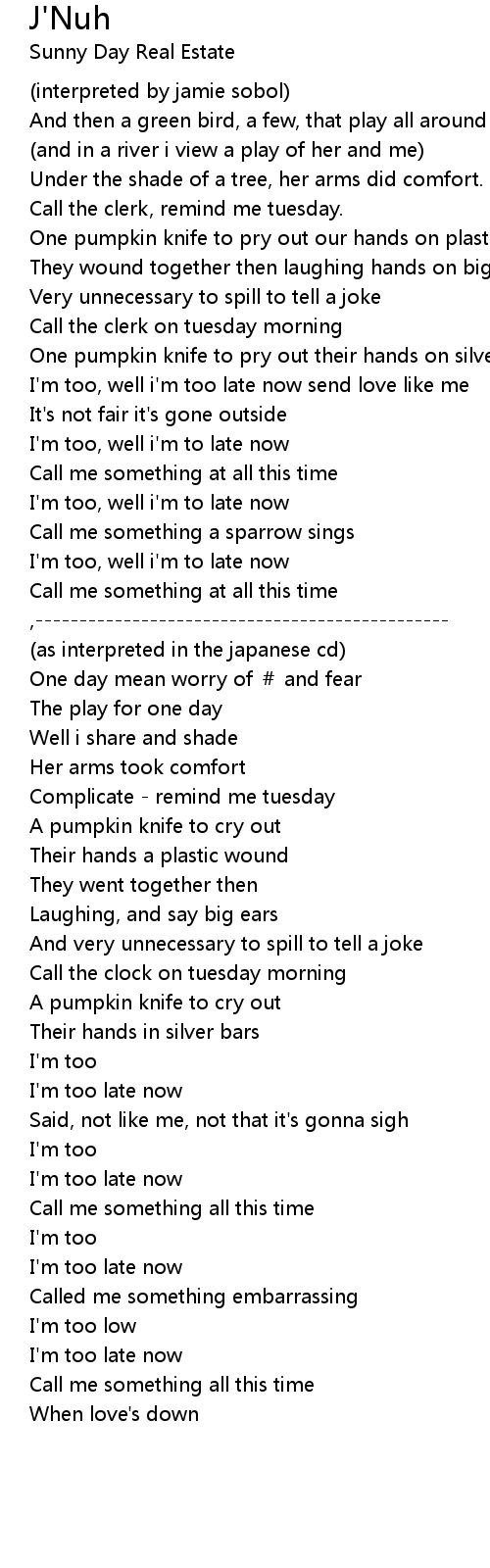 | I' m too, well i' m too late now send love like me | |