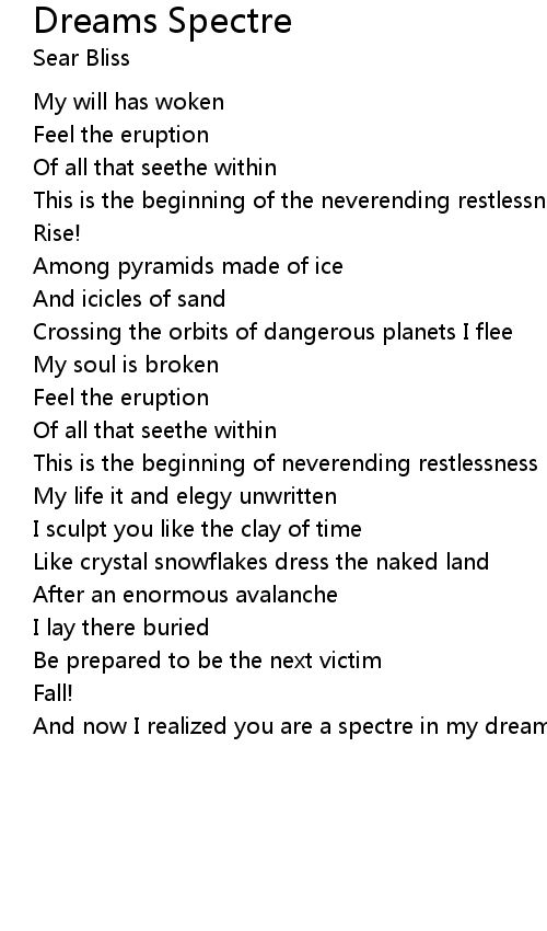 And now I realized you are a spectre in my dreams |