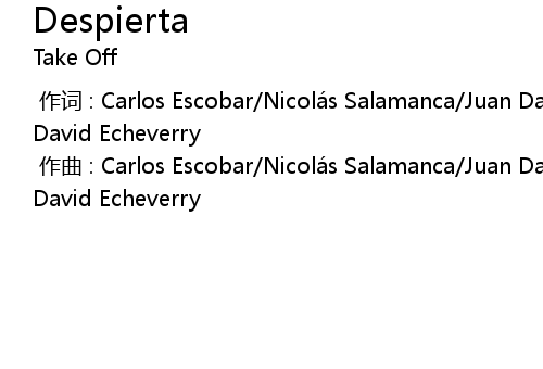 | [00:00.00-1] | 作曲 : Carlos Escobar/Nicolás Salamanca/Juan David Quecano/Juan David Echeverry |