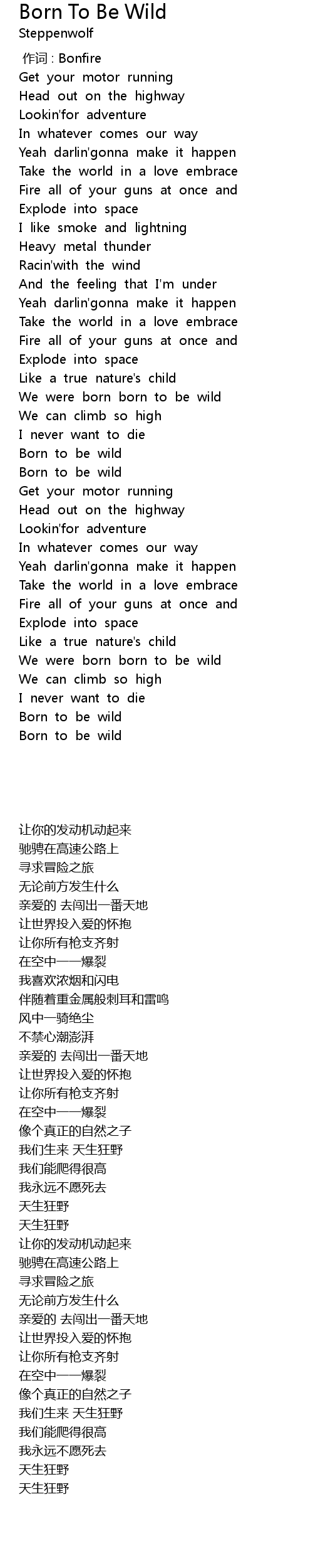 | [02:55.75] | Born to be wild |