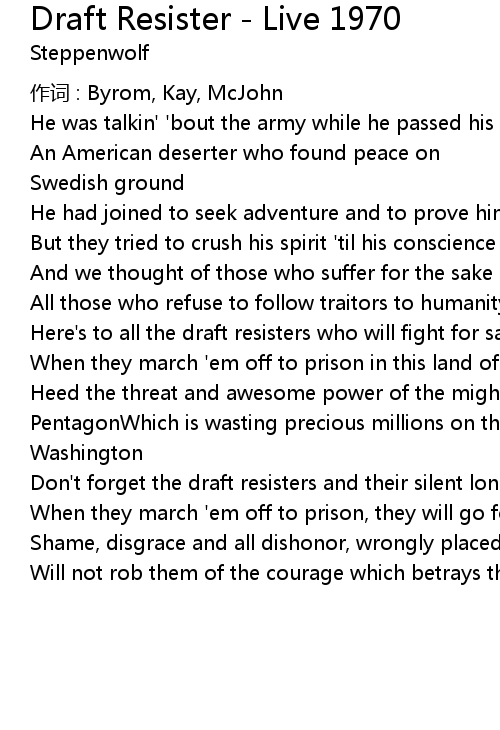 | Don' t forget the draft resisters and their silent lonely plea | |