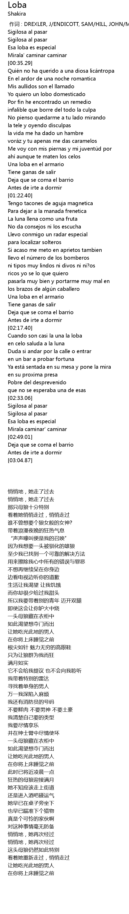 | [00:00.00] | zuò cí : DREXLER, J ENDICOTT, SAM HILL, JOHN MEBARAK, SHAKIRA |