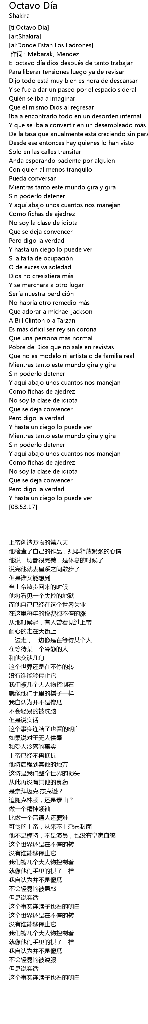 | [00:13.09] | El octavo di a dios despue s de tanto trabajar |