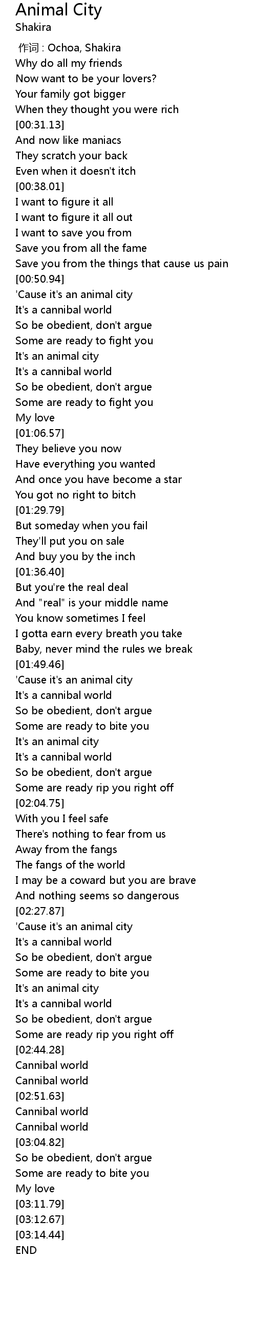 | [00:51.76] | ' Cause it' s an animal city |