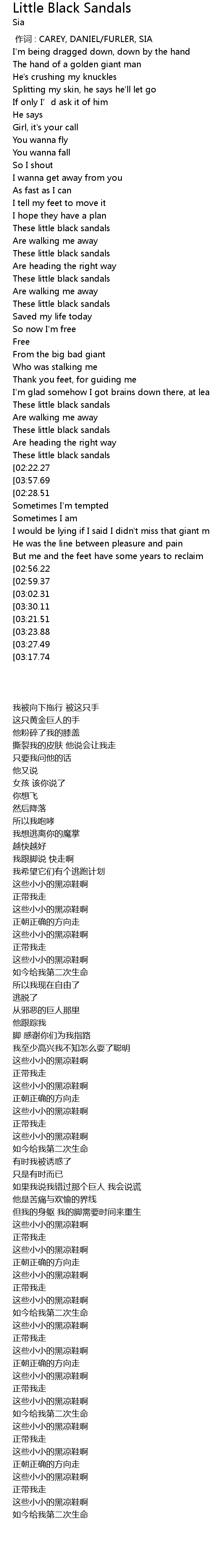 | [03:33.12][03:21.51][03:08.44] | These little black sandals |