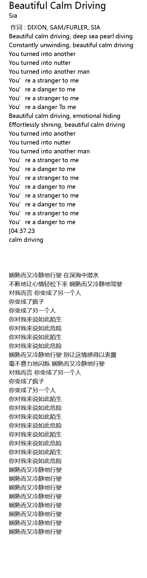 | [04:43.99][04:37.23][04:30.67][04:23.49][04:16.54][04:09.61][04:02.87][03:55.89] | Beautiful calm driving |