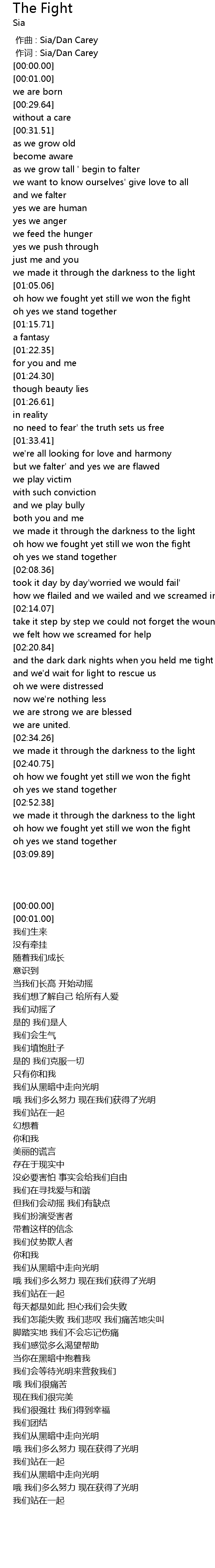 | [00:00.00] | zuò cí : Sia Dan Carey |